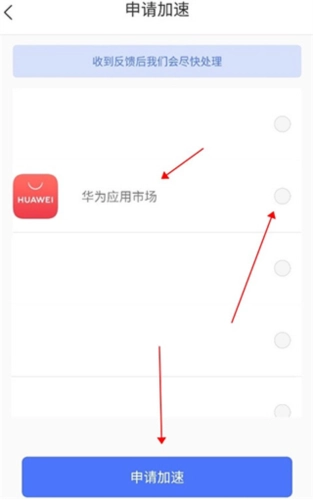 进入之后就能申请加速了,拿应用市场举例,我们选好后直接提交申请,接着等反馈就行啦。