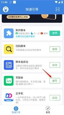 打开该软件后进入快速引导界面,找到写脚本的功能并点击编写。