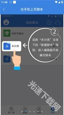 点击选择“未分类”目录下的“新建脚本”按钮,即可进入编辑器着手编写脚本。