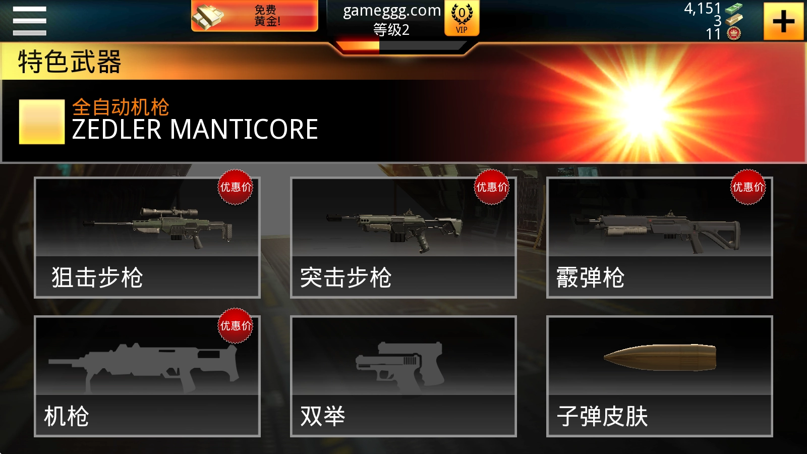 丰富多样的武器可以自由的解锁使用,并且每一把武器都能进行升级强化,提升准度、火力等属性,帮助你更好的完成任务。