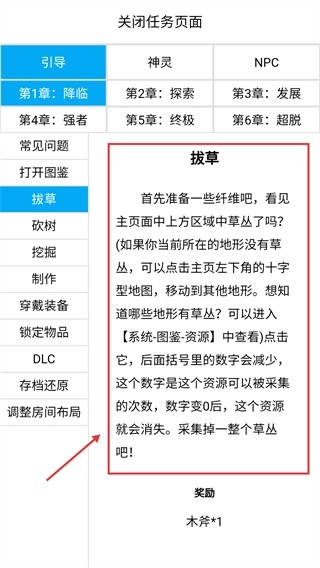 完成【拔草】任务时,要在主页面找到草丛;要是没有草丛,就点击十字地图切换地形;采集后括号里的数字会减少,直到减到0就能获得纤维。