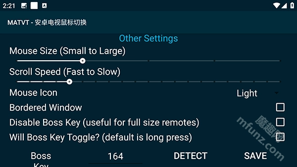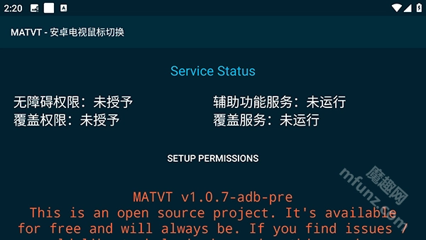 matvt模拟鼠标软件的使用方法十分简便,在授予相应权限后,依据提示完成鼠标模式的按键配置,接着把手机与电视机连接,就能正常使用了。该软件的核心按键主要有方向键(DPAD)、彩色按键、Info键和BossKey这四种,不仅界面简约清爽,操作起来也十分便捷!