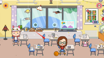 1、在教室场景,点击空座位,可让角色就座,与周围同学互动。