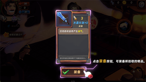 4、点击装备按钮,可装备所拾取的物品;