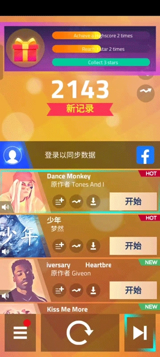 magic tiles 3是一款趣味性十足的音乐节奏类游戏,在magic tiles 3(魔法钢琴师3)国际版中,玩家需跟随音乐节拍开启更多高难度挑战玩法。游戏里的钢琴块速度会逐渐加快,对手速与反应力的要求也随之提升,挑战性直接拉满,感兴趣的玩家不妨来magic tiles 3游戏中挑战一番!