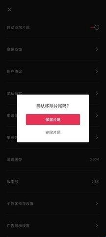 在设置中找到“自动添加片尾”功能,关闭该选项。