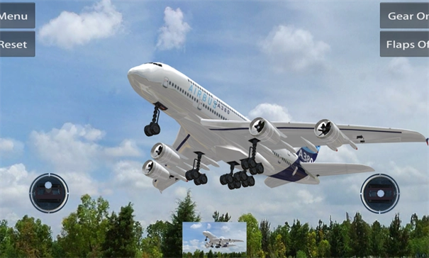 3、进入游戏后,左下角的按钮用于操控飞机的前进方向与飞行轨迹,右下角的按钮则负责控制飞机的上升高度等操作。
