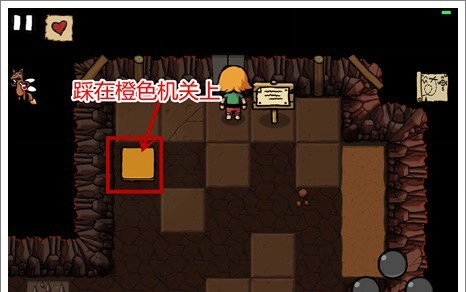 1、第一个洞穴的机关设计很简单,只要角色踩到那个橙色的机关,门就会自动开启了。