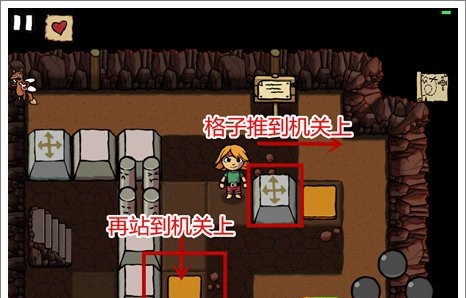 4、来到最后一个洞穴后,先把各自的机关推到旁边的机关位置上,接着自己站到另一个机关处,此时木柱会下落,门便会打开,即可通关。