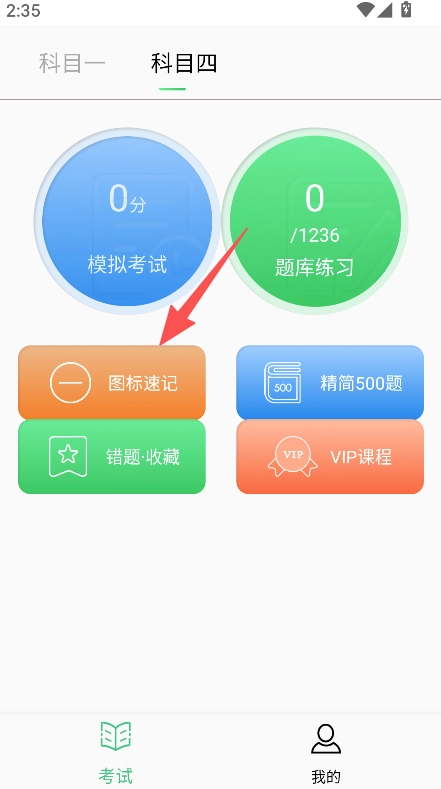 进入考试板块后,点击“图标速记”选项,再从中选择交通标志等具体分类。