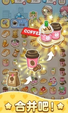 点击咖啡机能够获取各式各样的物品,而两个一模一样的物品则可以合成为等级更高的物品。