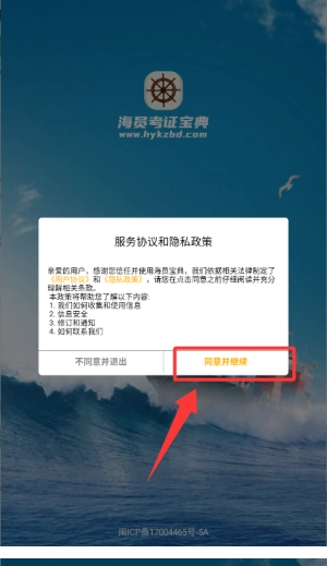 在仔细阅读并确认服务协议和隐私政策的内容后,点击“同意并继续”按钮,即可进入应用开始使用。