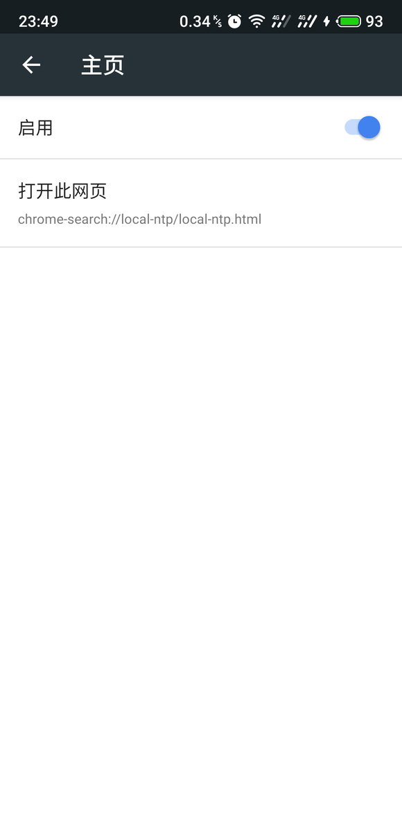 已经知道首页是chrome-search://local-ntp/local-ntp.html,为了快捷进入主页。在设置里面可设置主页地址为这个。以后点小房子就能直接进入。3个点-》设置-》主页-》启用并设置这个地址: