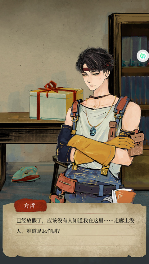 3、进入游戏如图,玩家扮演的主角“方哲”意外收到了一个礼品盒;