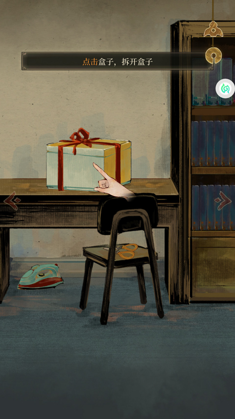 4、游戏采用点击式解谜玩法,首先点击盒子,拆开盒子;