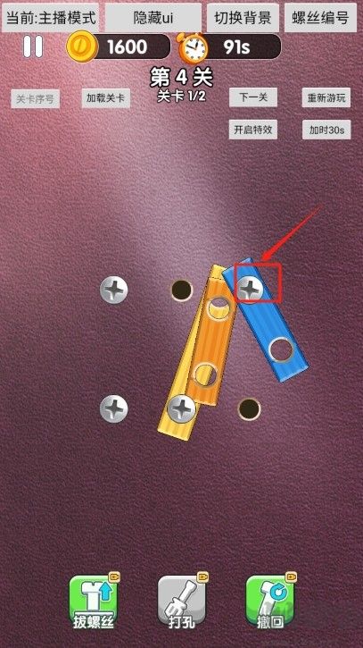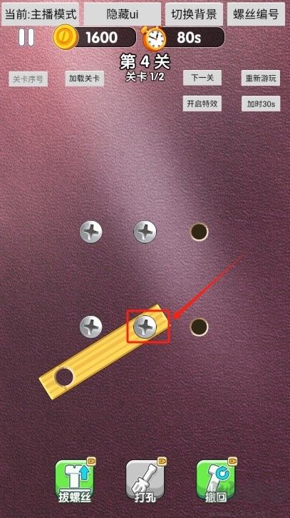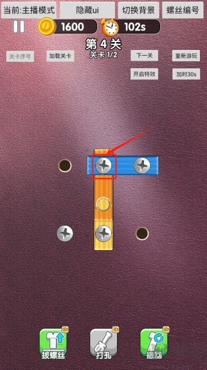 1、打开关卡后,点击左上角螺丝,将其精准移动到指定的空洞中;