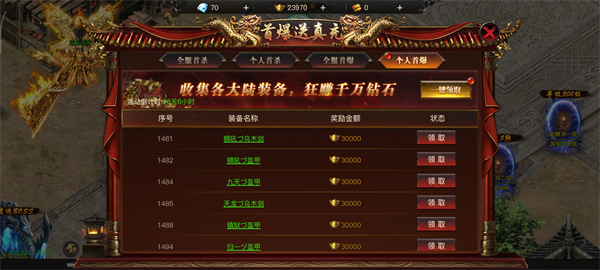 装备秒爆:小怪、精英怪均有机会掉落顶级装备,世界BOSS概率产出麻痹戒指等稀有道具。