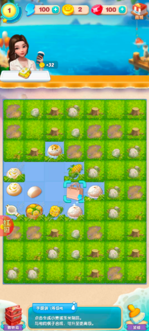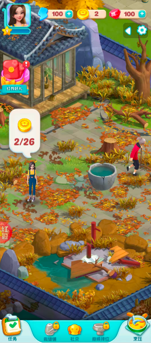3、通过消除的玩法来打扫庭院,相同物体连成线就能消除