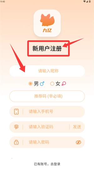 新用户需要点击注册入口,填写昵称、手机号等信息来完成账号创建。