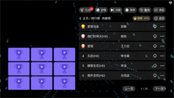 随畅ktv点歌,随畅KTV点歌是一款全免费的线上K歌软件,它具备高清MV播放与智能语音助手功能,界面简洁易上手,曲库也十分丰富,收录了各类热门榜单歌曲。软件支持在线MV播放、伴唱、切歌等功能,用户可根据喜好选择功能,还能进行调音和收藏,为大家带来便捷的家庭KTV体验。
