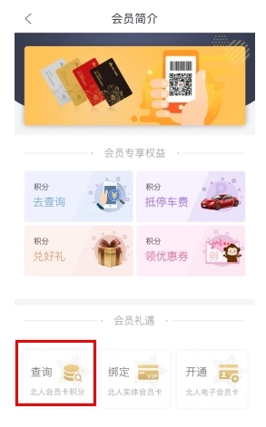 在会员界面点击标记处的查询