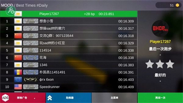 6、掉下去即会结束,结束后会根据游玩情况来进行排名;