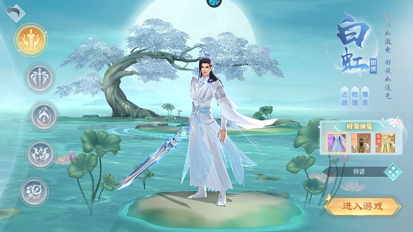 游戏里设有白虹、邀月、灼颜、幽夜、菩提这五大职业。