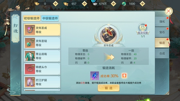 使用低星级红色装备可大幅提升装备锻造成功率哦~