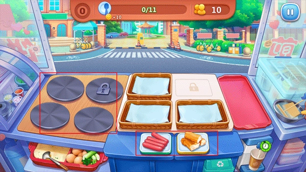 要是你不小心把煎饼煎糊了,也不用慌,只要快速点两下,就能把焦掉的食物丢掉啦。