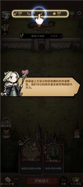 进入游戏后,游戏界面正上方会显示你持有的资源数量,你可以借助这些资源来建设营地和增强兵力。
