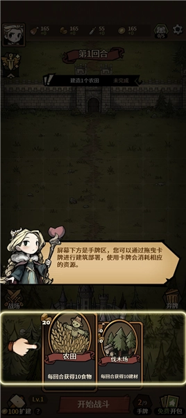 界面下方为手牌区域,您能够借助拖曳卡牌的方式完成建筑部署,而使用卡牌则会消耗对应的资源。
