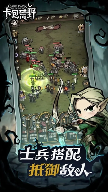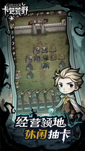 卡包荒野是一款极具趣味的卡牌策略生存游戏,卡牌是其核心玩法机制,玩家收集资源、探索地图等各类操作都借助卡牌完成,目标是在荒野中存活下来。这款游戏融合了抽卡、经营、生存、领主模拟等多样元素,属于策略卡牌生存类型。游戏背景设定在大地开裂、乌云遮天的末日世界,幸存的人类藏身于荒野的残垣断壁之中,你将作为营地领主,带领仅存的人类发展,获取充足资源,持续扩建营地,还需训练士兵抵御变异生物的侵袭!
