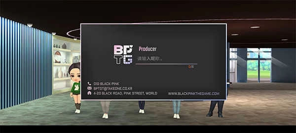 进入游戏后,你将以制作人的身份负责BLACKPINK组合后续的训练事宜。在成员们完成自我介绍、正式开启工作之前,需要一张专属你的名片——输入昵称就能继续推进游戏啦。
