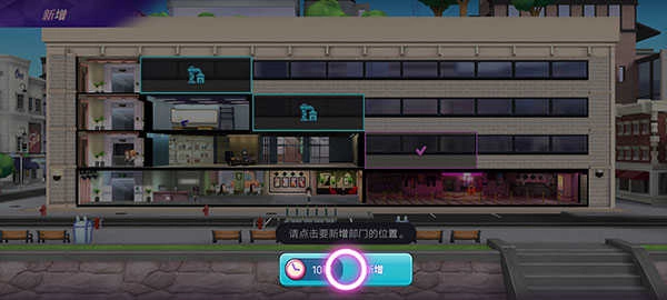 挑选空闲的区域,点击想要添加部门的地方,就能开展建造,之后也可以进行修改。