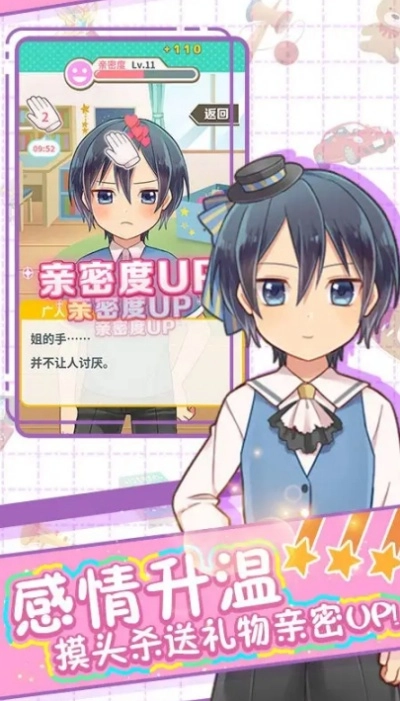 感情升温:摸头杀送礼物亲密up。
