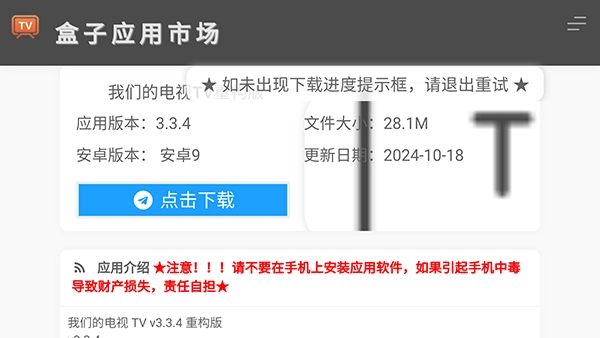 盒子应用市场是专为智能电视设计的应用商店,能让电视像手机一样便捷使用!平台汇聚了海量应用与游戏资源,无论是电视直播、影视类软件,还是各类投屏工具,都能在这里找到,轻松满足在线投屏需求。此外,盒子应用市场还设有游戏板块,用户可将喜爱的游戏安装到电视上,尽享大屏娱乐带来的视觉冲击。得益于顶级CDN技术的加持,应用下载速度极快,无需长时间等待,就能快速体验到心仪的软件,使用体验十分出色!