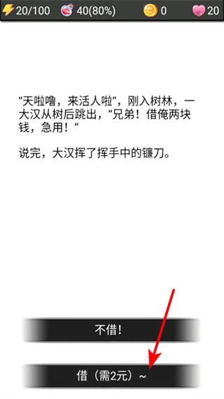 在游戏里遇到事件选择时,能依据资源策略来做决定,比如碰到借债事件就可以选择借款,这样会触发后续的剧情和战斗。