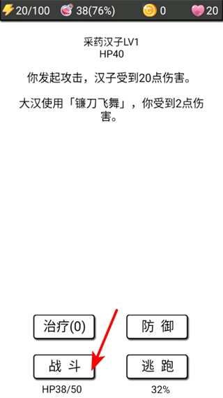 当和采药汉子这类敌人交战时,点击战斗按钮就能主动发起进攻,战斗胜利后不仅能得到资源和经验,还能让自己的实力得到提升。
