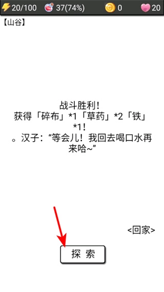 战斗获胜后,点击探索按钮,就能继续在当前区域进行探索,以获取更多资源并遭遇新的事件。