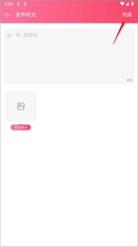 在上部输入文字内容后添加图片,点击【完成】按钮就能发布。