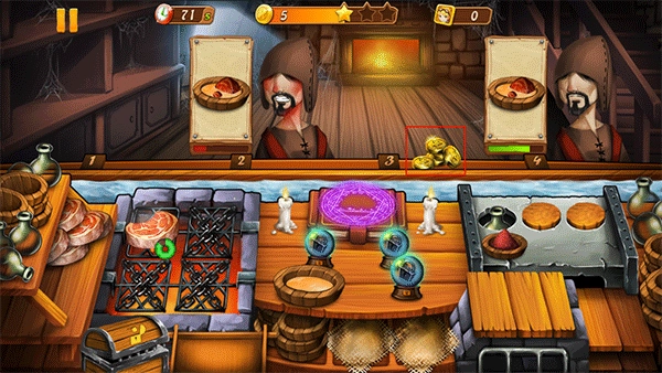 1、客人位置上的金币可以不用着急收取,尤其是在有点手忙脚乱的情况下或者应付不来的情况下,这样有金币的位置一般不会再再来客人,建议手速没有那么快的玩家可以使用这一方法。如果实在来不及可以给客人一个果子。