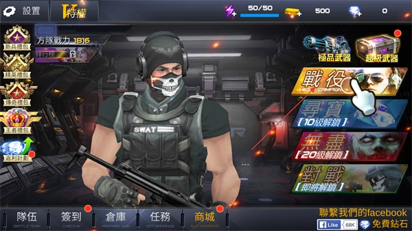 打开雷霆枪战的游戏主页后,点击页面右侧的战役按钮,即可进入游戏。