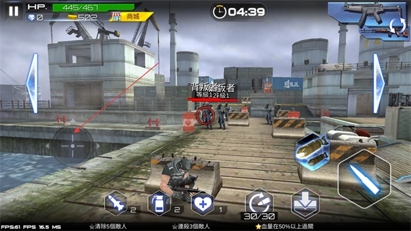 请点击右下角的攻击键,对准敌人进行射击,若能命中其头部,可造成高额伤害,同时减少子弹的消耗。