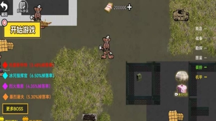 玩家操作猪猪士兵在地图里自由移动,借助搜寻建筑、消灭敌人来获取资源。