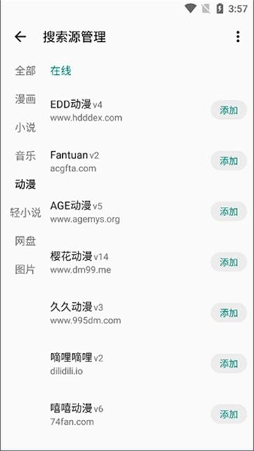 点击左侧的漫画,并点击搜索源后面的添加即可。