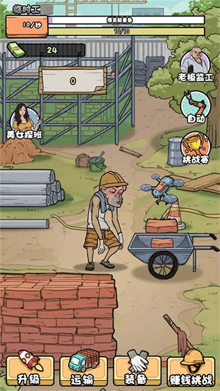 4、点击屏幕即可开始搬砖,谁先完成任务目标就能赢得胜利,比赛胜利后可获得金钱奖励