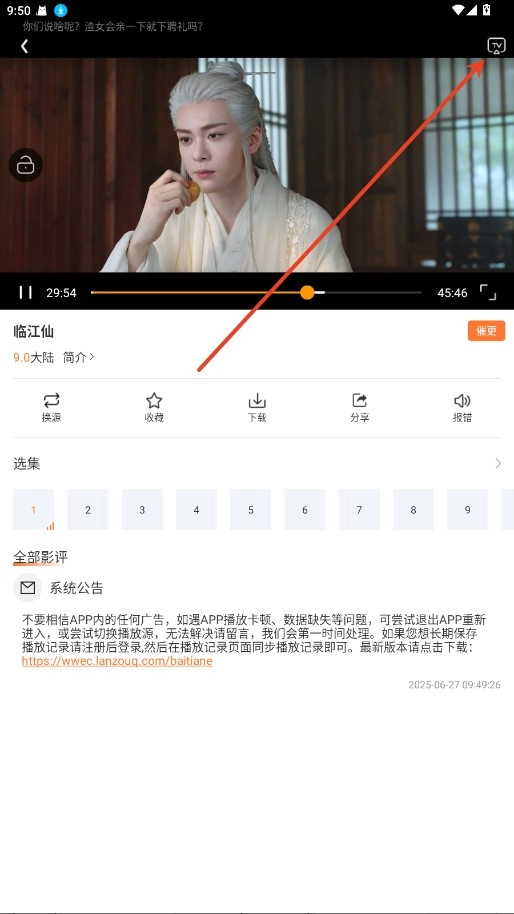2、点击右上角TV投屏