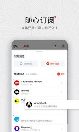 随心订阅:无论是媒体资源还是兴趣主题,都由用户自主挑选。