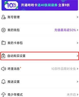 浏览页面内容,找到【自动购买设置】选项并点击进入其管理界面。