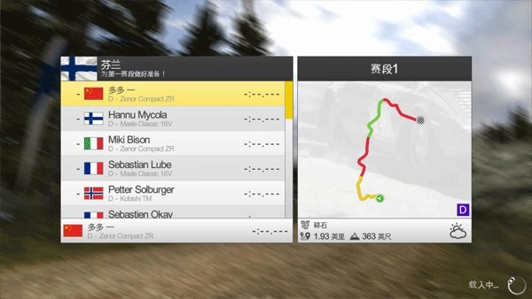 5、进入游戏比赛式,先选择需要使用的车辆,再选择要赛段,旁边会显示赛段路线